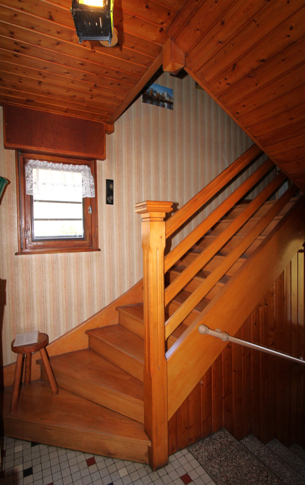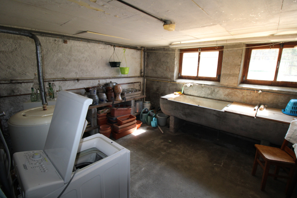 Au sous-sol : Garage avec coin atelier, buanderie, chaufferie, cave.